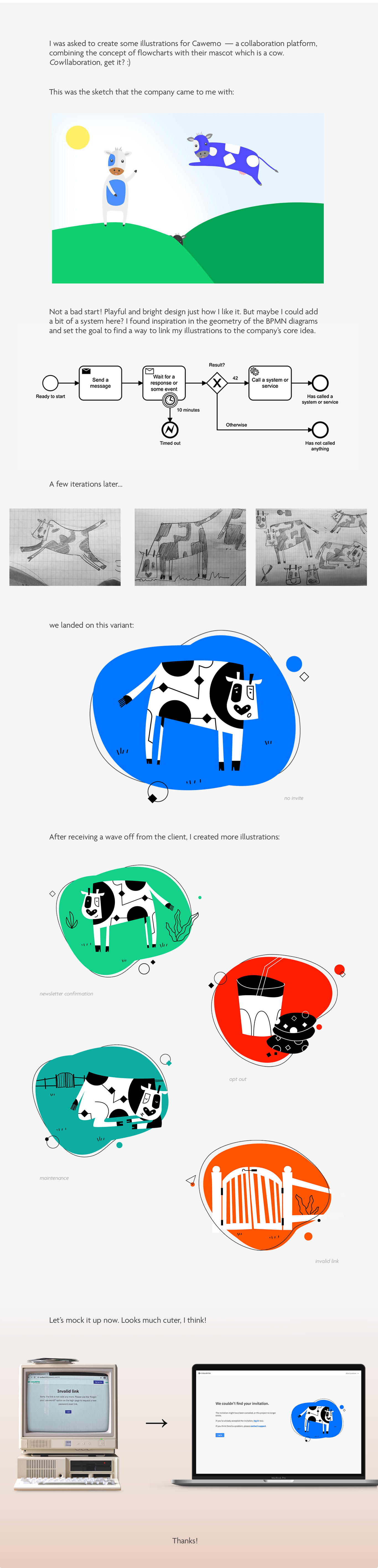 A quick illustration project for Cawemo, a collaboration platform helping business users + developers automate end-to-end processes.