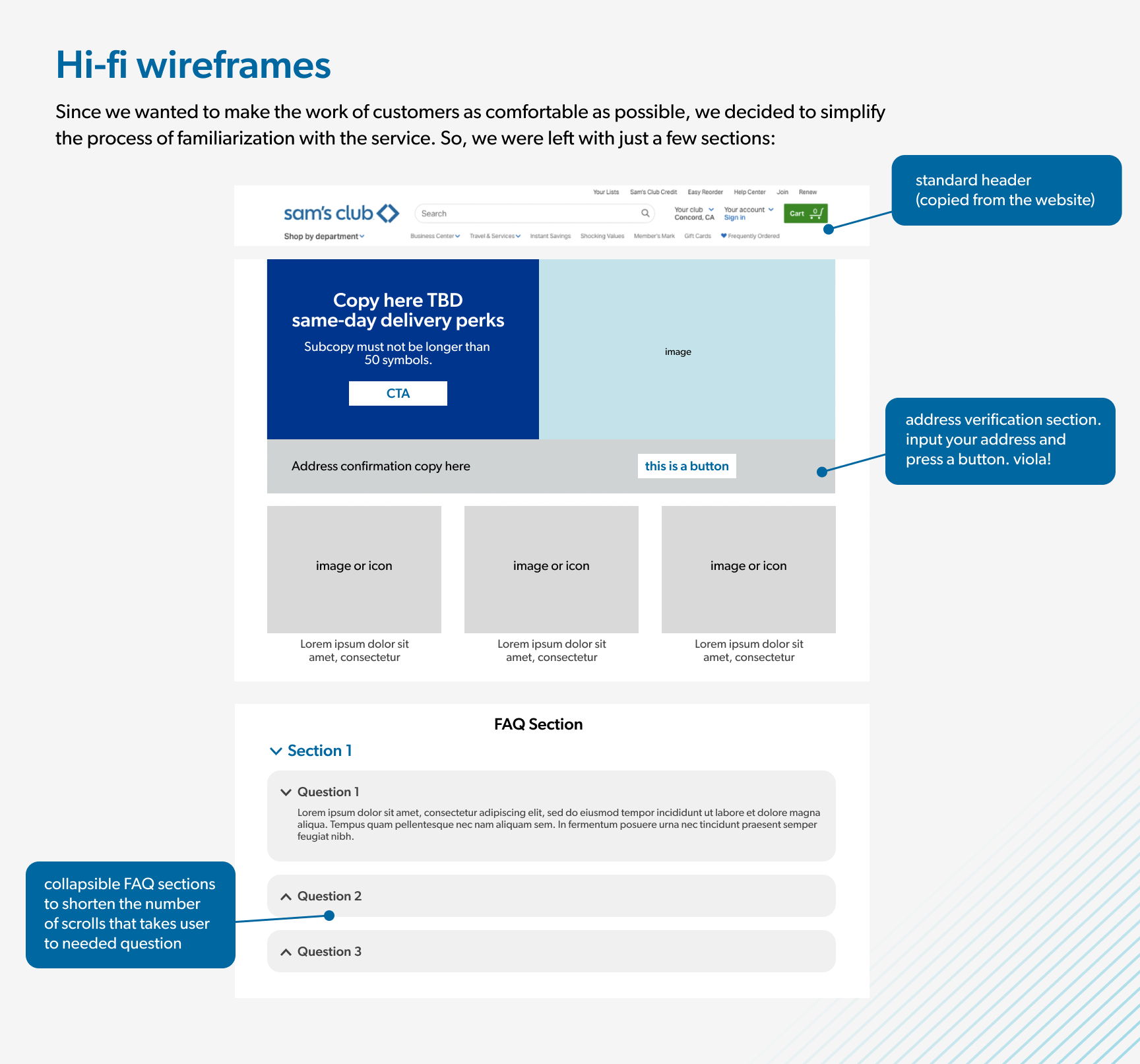 UX design project for Sams Club's website, specifically tailored for Same-day Delivery service